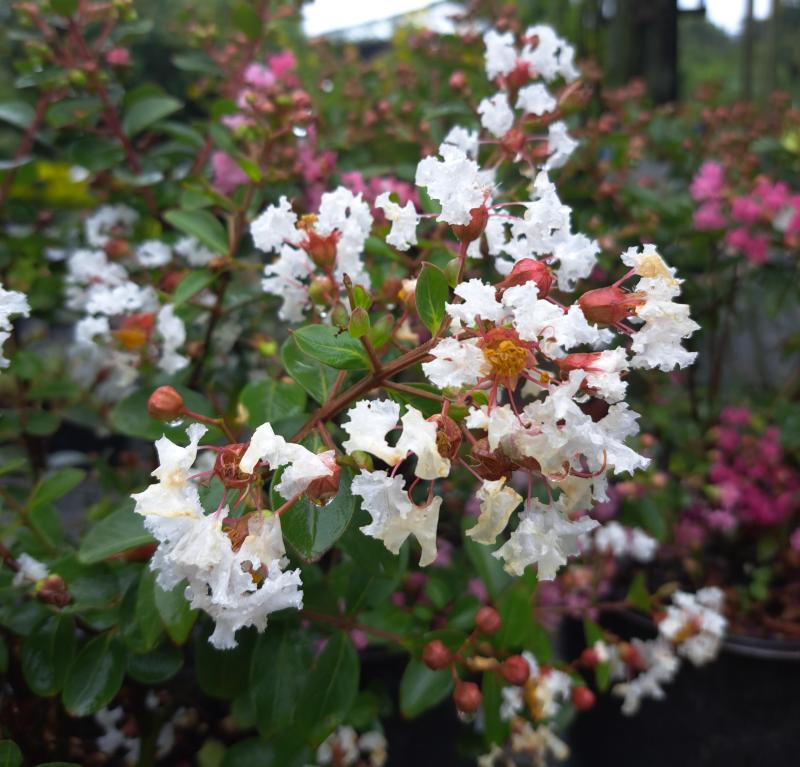 GreatMyrtle™ is a delightful, compact variety of crape myrtle known for being one of the earliest to bloom. You can enjoy a stunning display of flowers from summer to fall, after which the foliage transforms into a vibrant orange-red color before dropping for the winter. With its charming umbrella shape and sturdy, densely branched structure, GreatMyrtle is ideal for creating a captivating focal point in your garden or border and is also perfect for mass planting. Although it can tolerate dry conditions, it thrives with regular moisture. Plant using a Success Kit and fertilize in the spring and fall with Espoma Plant-tone for optimal growth.