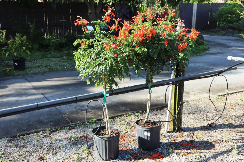 Cape Honeysuckle is great for attracting butterflies and hummingbirds. The bright, showy, tubular flowers appear on and off throughout the warm months. It is drought tolerant once established. Roots are non-aggressive. Plant in the ground using a Success Kit or in a large container with Happy Frog Potting Soil. Fertilize in spring and fall with Espoma Plant-tone.