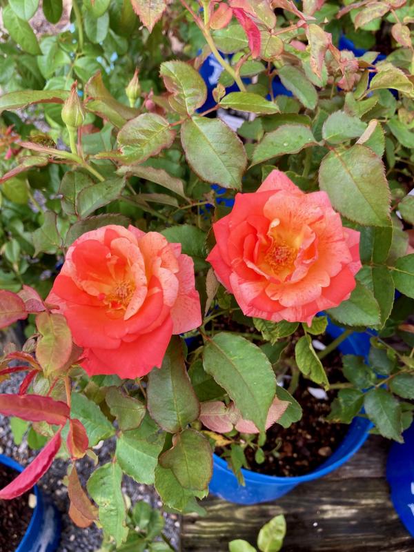 Rose, Michelangelo Hybrid Tea peach/pink stripes 3 gal