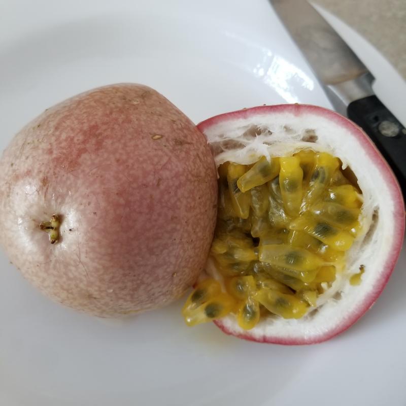 Fruit is tangy, sweetly scented and musky. Makes a great smoothie or cocktail flavor. Seeds are full of nutrients. Purple skin with yellow flesh. Self pollinating, but produces more with other types nearby. A fast growing vine during summer. Keep dry during winter while it is dormant. Plant near a trellis support, and feed often with Plant-Tone. Micronutrients necessary to improve fruiting.