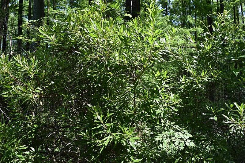 Its glossy, dark green leaves emit a pleasant scent when crushed. In the spring, Wax Myrtle produces small, inconspicuous flowers that attract a variety of pollinators and is a host plant for the Red-banded Hairstreak butterfly.