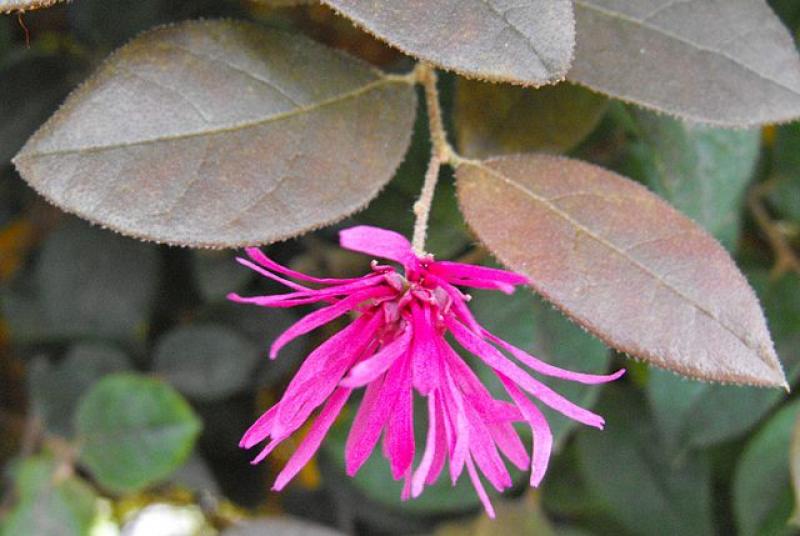 Loropetalum is grown for its beautiful burgundy foliage that provides nice contrast in the landscape. It can be kept trimmed around 3 feet tall. It blooms on and off throughout the year, but looks its best in the spring. Plant in the ground using a Success Kit or in medium sized containers with Happy Frog Potting Soil. Fertilize in spring and fall with Espoma Plant-tone.